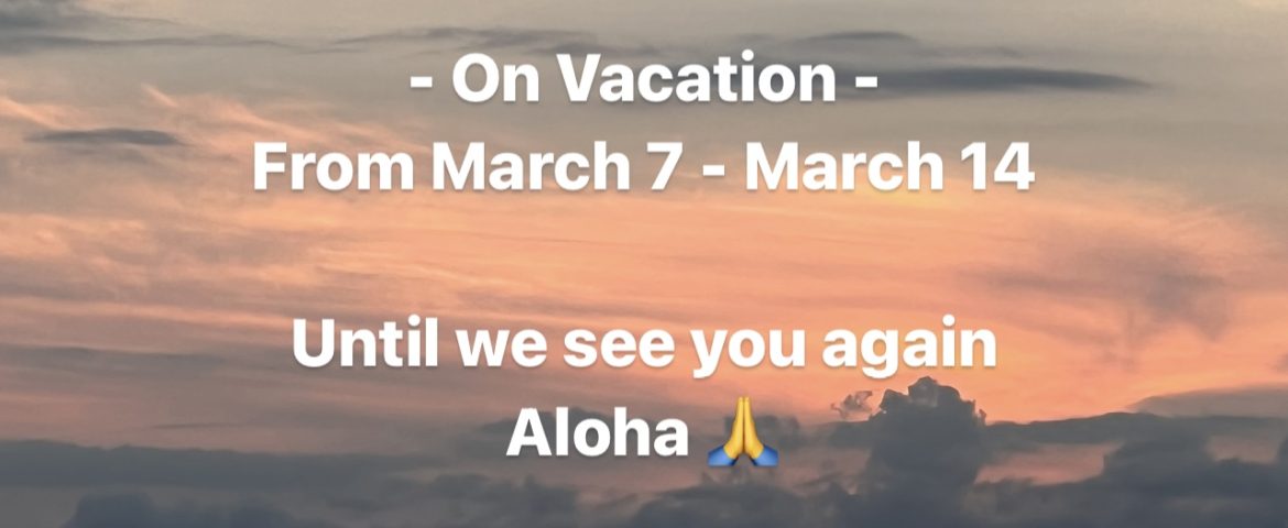 We are on vacation from March 7 through March 14. We'll check our emails regularly, but on a different time zone. Please email all your requests. Thank you for your…